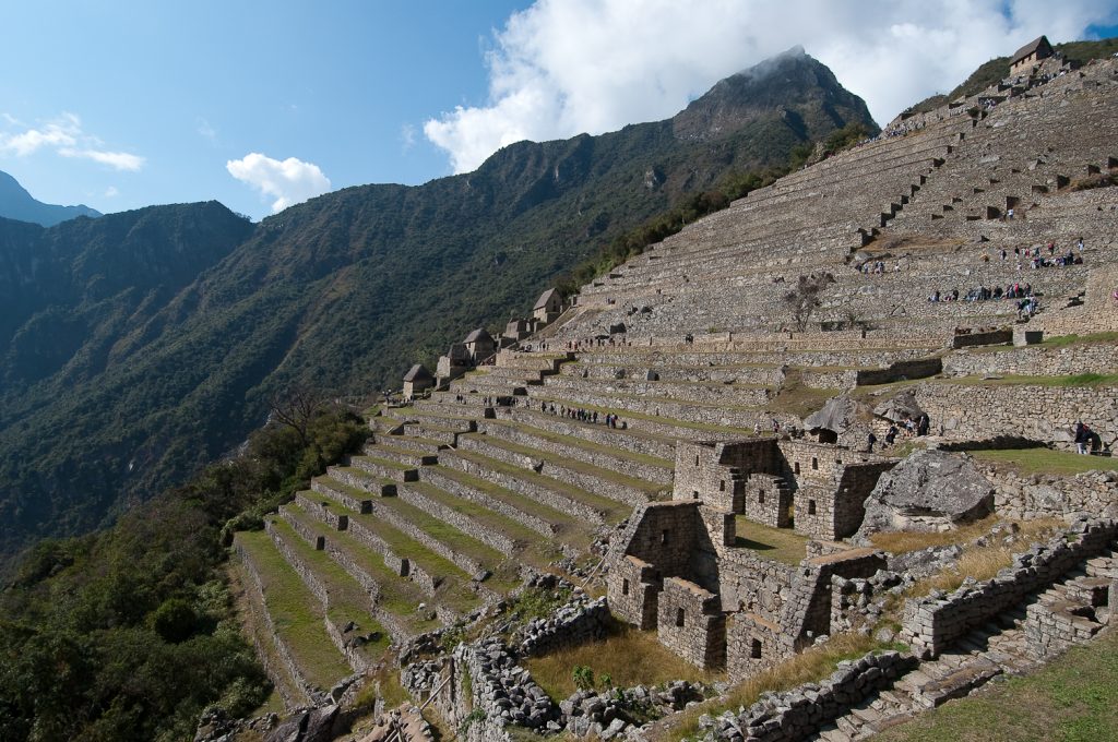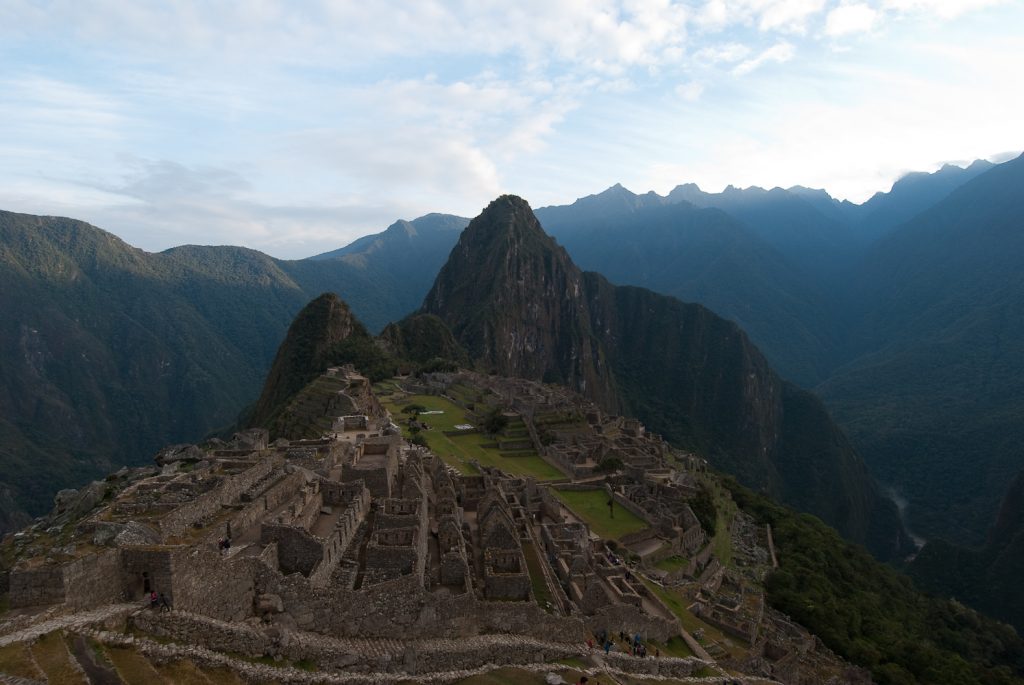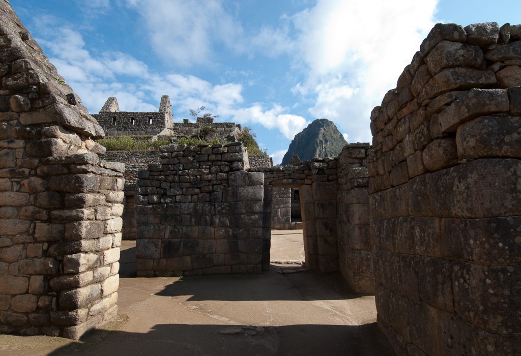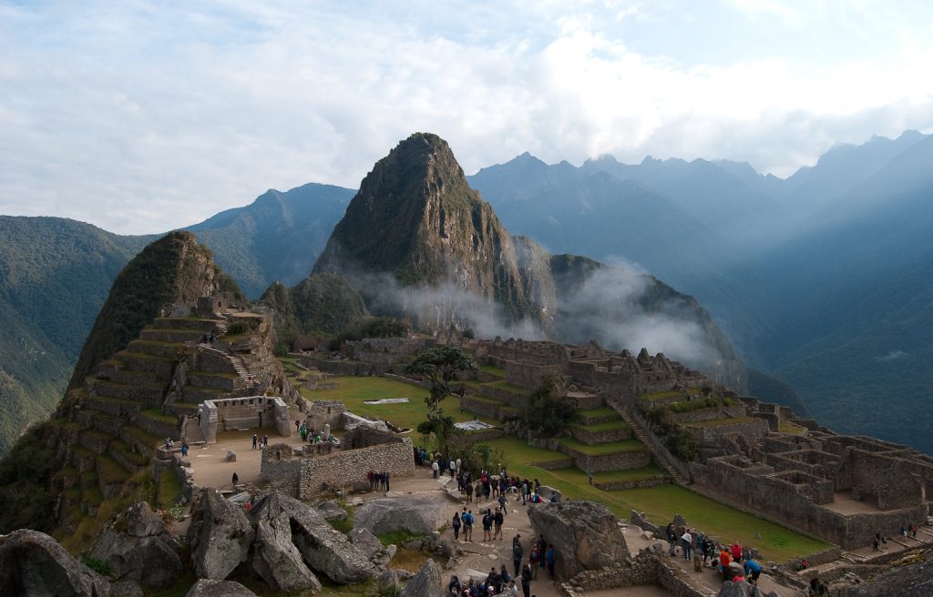 Continuiamo a scattare foto mentre il sito va riempiendosi di turisti e quando siamo finalmente soddisfatti, la nostra paziente guida ci accompagna a visitare le rovine della città perduta degli Inca, sospesa ai confini tra cielo e terra. La città di pietra è un’opera portentosa di architettura e ingegneria civile, adagiata su una sella tra due montagne, il Machu Picchu (montagna vecchia) e l’Huayana Picchu (montagna giovane), che scende ripida conferendole una straordinaria difesa naturale e un’impareggiabile vista sulla valle dell’Urubamba. Il mistero del perché questa città sia sorta e poi sia stata abbandonata improvvisamente rimanendo nascosta agli occhi dello straniero fino al 1911, rimane non svelato e fa parte del fascino di questi luoghi.
