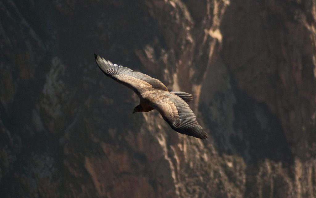Assistiamo per un po’ alle evoluzioni di questo superbo rapace che qui nidifica grazie alla presenza di anfratti inaccessibili situati ad altezze impensabili e che gettandosi nel canyon sfrutta, grazie alla poderosa apertura alare di circa tre metri, le correnti ascensionali per risalire volteggiando.