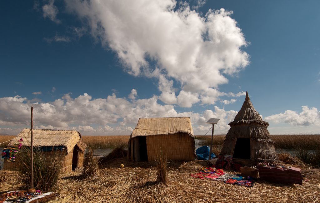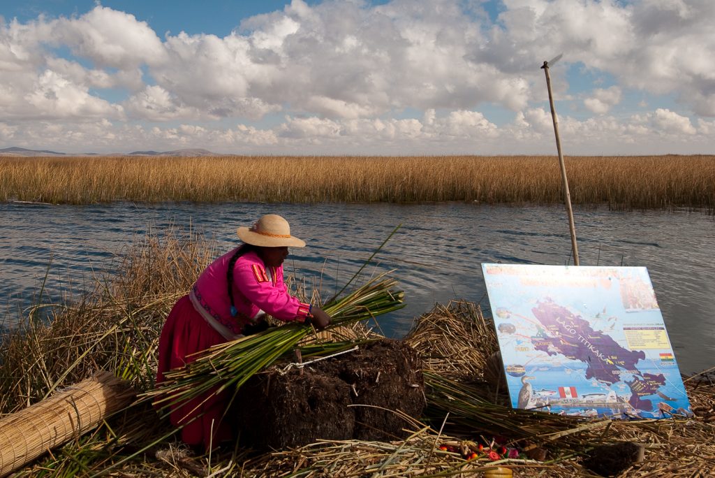 E’ molto particolare la sensazione che si prova a camminare su queste isole, il terreno si muove sotto i nostri piedi. Una signora ci dimostra brevemente come vengono costruite le isole fatte interamente di giunchi intrecciati, le case, le canoe che utilizzano per spostarsi. Il tutto è molto interessante anche se rimane la sensazione di artefatto ad uso e consumo dei turisti.