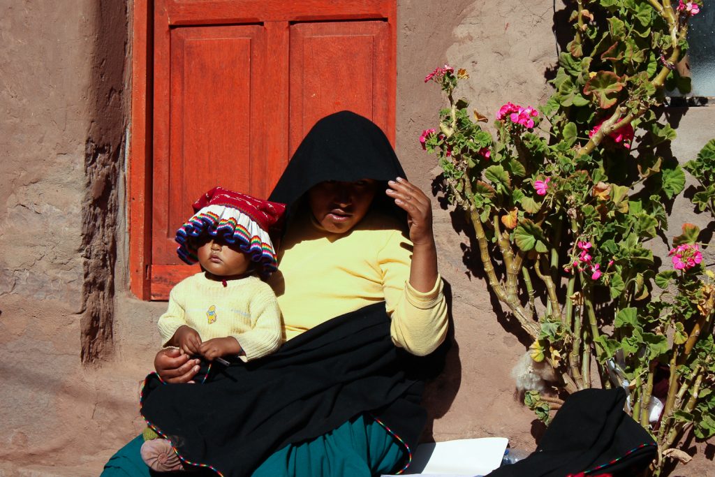 Giungiamo a Taquile, impressionante per la sua forma di monte appoggiato sulle acque. Si fa fatica a camminare, raggiungere la casa che ci ospiterà per la notte sembra essere impresa assai ardua, manca il respiro e Ines ci offre della muña o menta andina, per aiutarci.