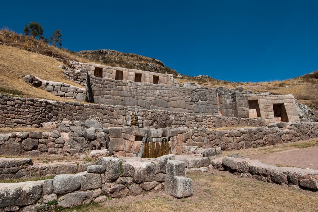 Ci spostiamo quindi al Tempio dell’Acqua presso Tampu-Machay. Posto a circa 3700mt di altitudine era probabilmente il bagno degli inca, formato da quattro muraglie scaglionate di diverso livello unite da scalinate di pietra. Dalla seconda di queste muraglie un ruscello alimenta una fontana principale dove, probabilmente, in passato l’Inca officiava il culto dell’acqua.