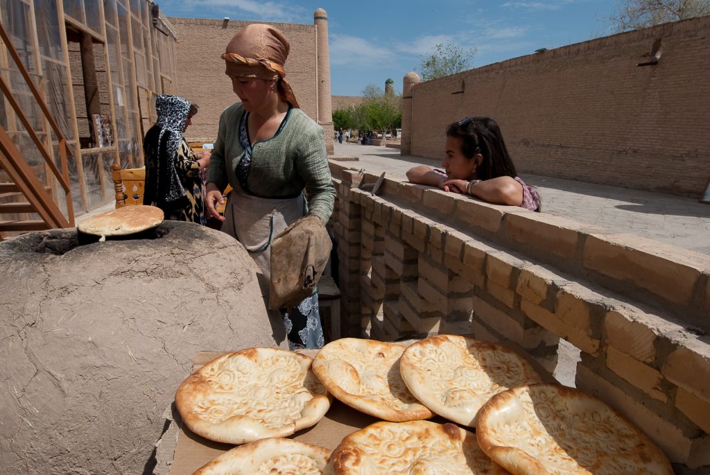 Partenza a metà Aprile con Uzbekistan Airways, l’aereo è semivuoto solo un gruppo di pensionati molto rumorosi che incontreremo diverse volte nel corso del nostro giro. Già in volo capiamo che il paese in cui stiamo andando ha le sue particolarità con cui dovremo fare i conti: tanta burocrazia sottoforma di fogliettini da collezionare ovunque, niente carte di credito, niente bancomat. Per fortuna, appena arrivati, c’è Nadie ad attenderci al di là dei controlli doganali; è la nostra guida che ci accompagnerà sempre, premurosa e attenta, ci aiuterà a comprendere la cultura locale, usi e costumi, insomma gli Uzbeki di oggi e di ieri.