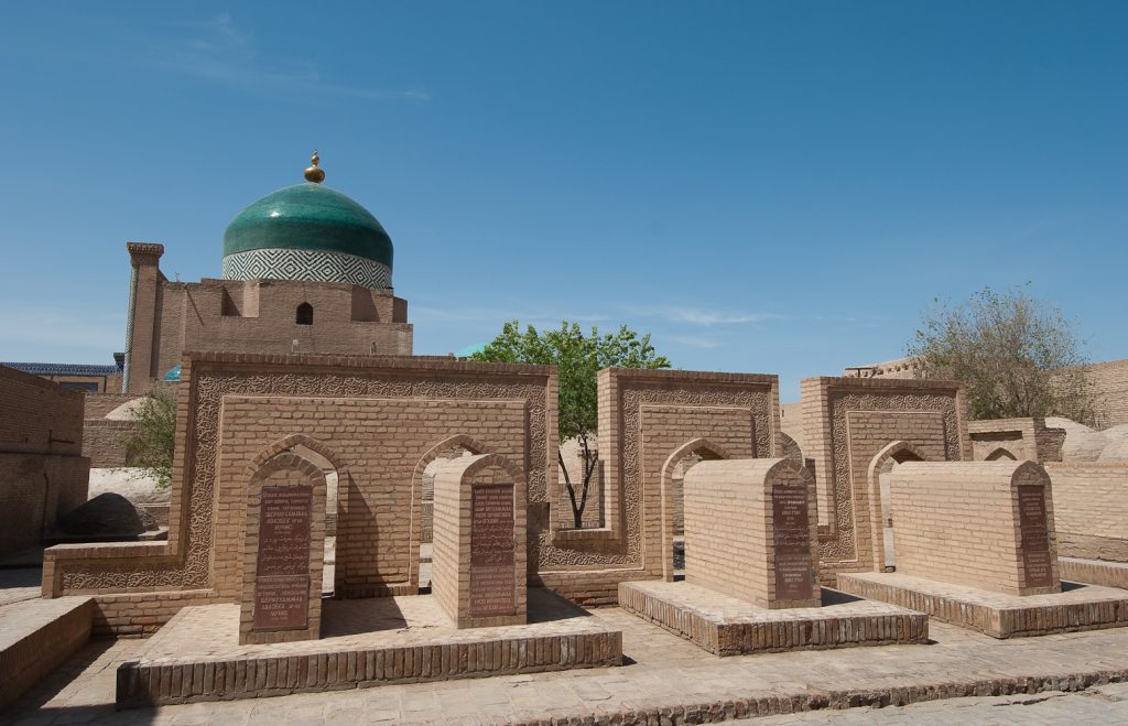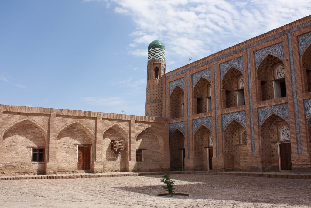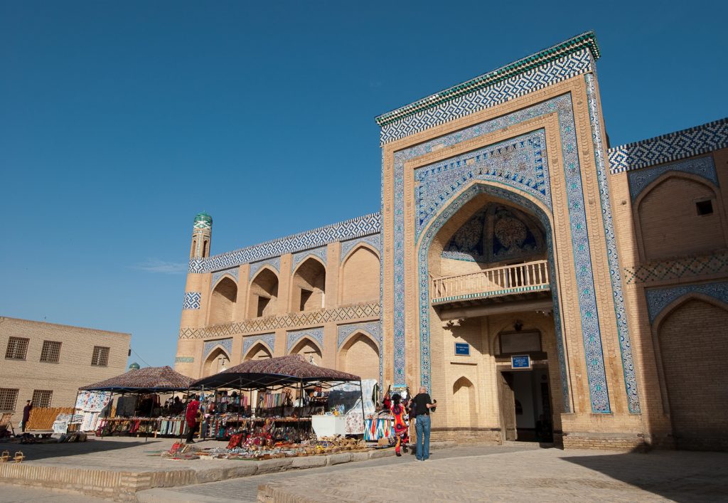 Il Pakhlavan Makmud uno dei più belli della città intitolato a al santo guerriero dell’Islam e la Madrasa di Mohammed Amin Khan oggi tristemente trasformata in albergo.