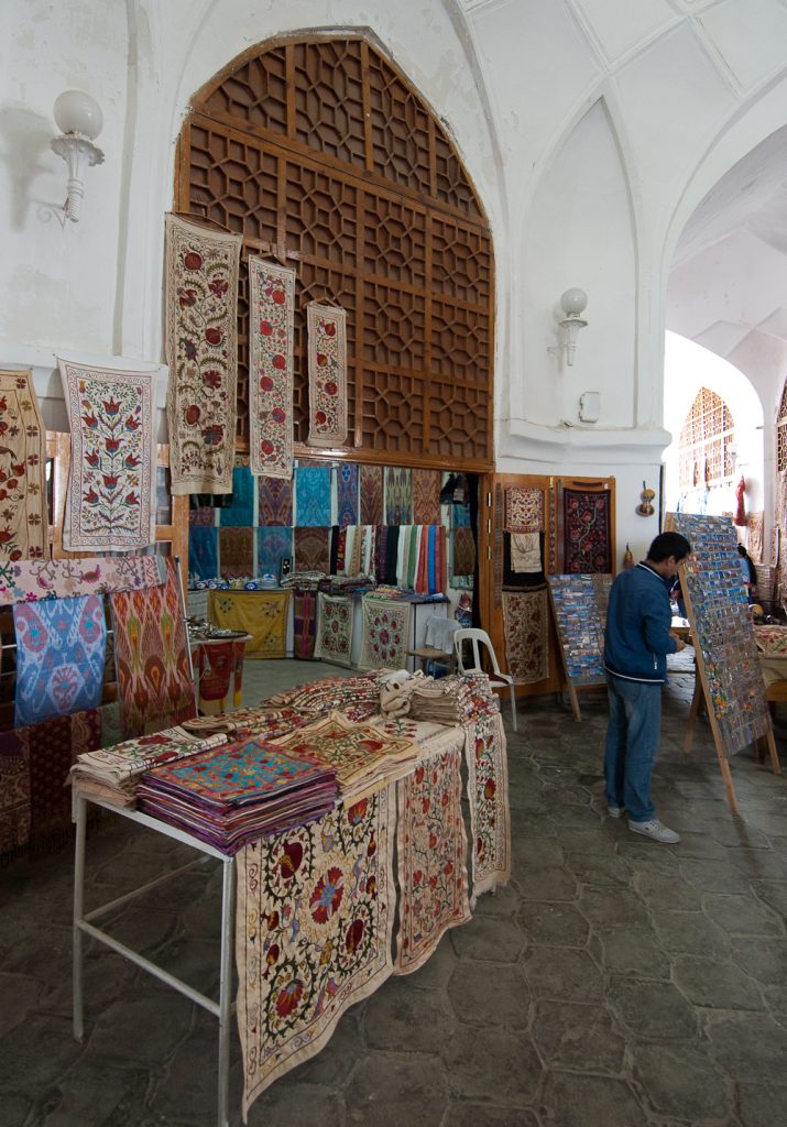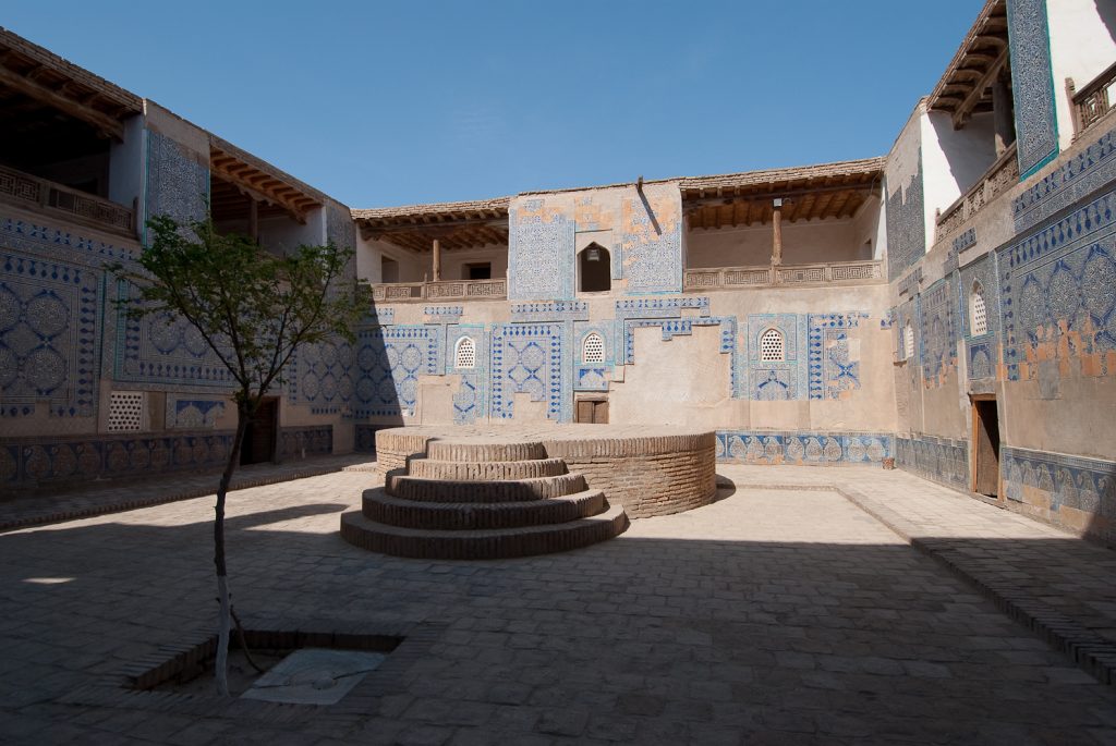 Il palazzo Tosh-Hovli, casa di pietra, il cui architetto fu decapitato per non essere riuscito a completare i lavori in due anni come promesso e il caravanserraglio e il bazar ancora oggi adibiti al commercio e la madrasa di Khuli Khan. Le nostre menti lentamente si abituano alle decorazioni, allo stile, ai colori e cominciamo ad assaporarne la bellezza e unicità.