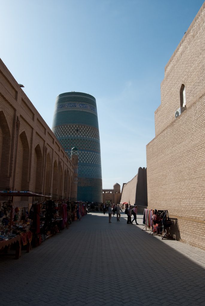 In realtà, come molte altre città da queste parti, nacque intorno al V o VI secolo d.C. e prosperò come luogo di ristoro lungo la Via della Seta e come tutti gli insediamenti posti lungo questa via carovaniera, passò attraverso alterne vicende storiche e un susseguirsi di dominazioni varie per finire sottomessa alla Russia e quindi assorbita nella neonata Repubblica Socialista Sovietica dell’Uzbekistan. Oggi è divisa in due grosse aree: Inchon-Qala “dentro le mura” e Dinchon-Qala “fuori le mura”.
