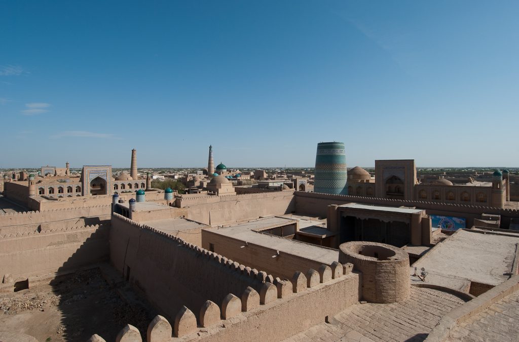 Dopo una pausa pranzo per gustare la cucina locale, ci dirigiamo verso il Kuna Ark, la fortezza dei regnanti di Khiva con il suo harem e le prigioni Zindon, costruite all’inizio del ‘900, e la moschea estiva e sul finire della giornata, verso il tramonto, saliamo in cima al Bastione Ak Sheik Bobo per godere di una vista mozzafiato della città.