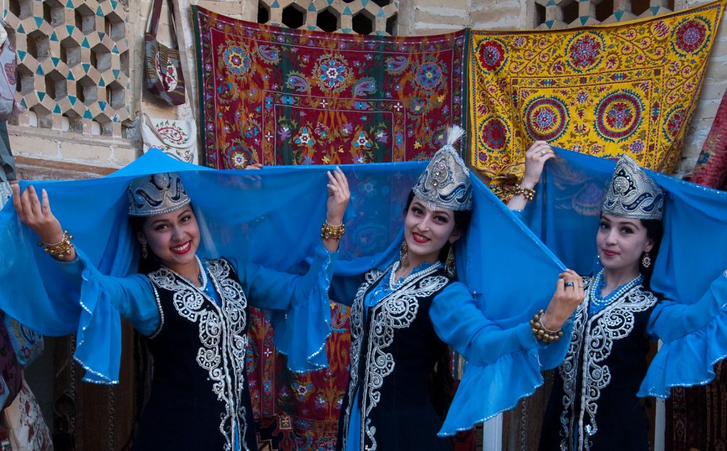 Gli Uzbeki sono il prodotto di una varietà di gruppi etnici, hanno tratti somatici che ricordano le popolazioni mediterranee, ma in realtà sono un incrocio di stirpi di origine turca, gruppi di origine indoeuropea e mongoli. Gli uomini indossano il loro caratteristico copricapo, il dopy e sorridono con i loro denti d’oro.
