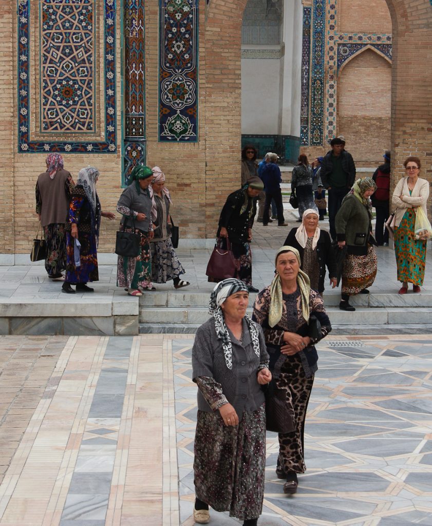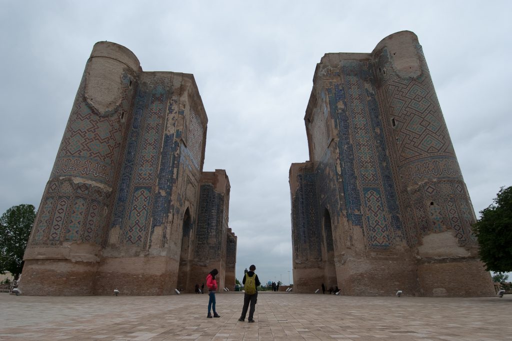 Il giorno successivo ci dirigiamo, attraverso la steppa, verso Shakhrisabz, la cittadina che diede i natali a Tamerlano nel 1336. Anticamente conosciuta come Kesh deve il suo nome attuale, che letteralmente vuol dire “città verde”, proprio al grande conquistatore. Egli volle, infatti, i molteplici e sfaccettati giardini in cui i fiori sbocciavano a centinaia e gli alberi mettevano le foglie nel corso delle lunghe primavere.