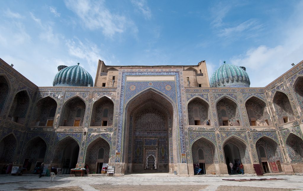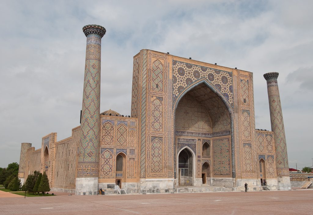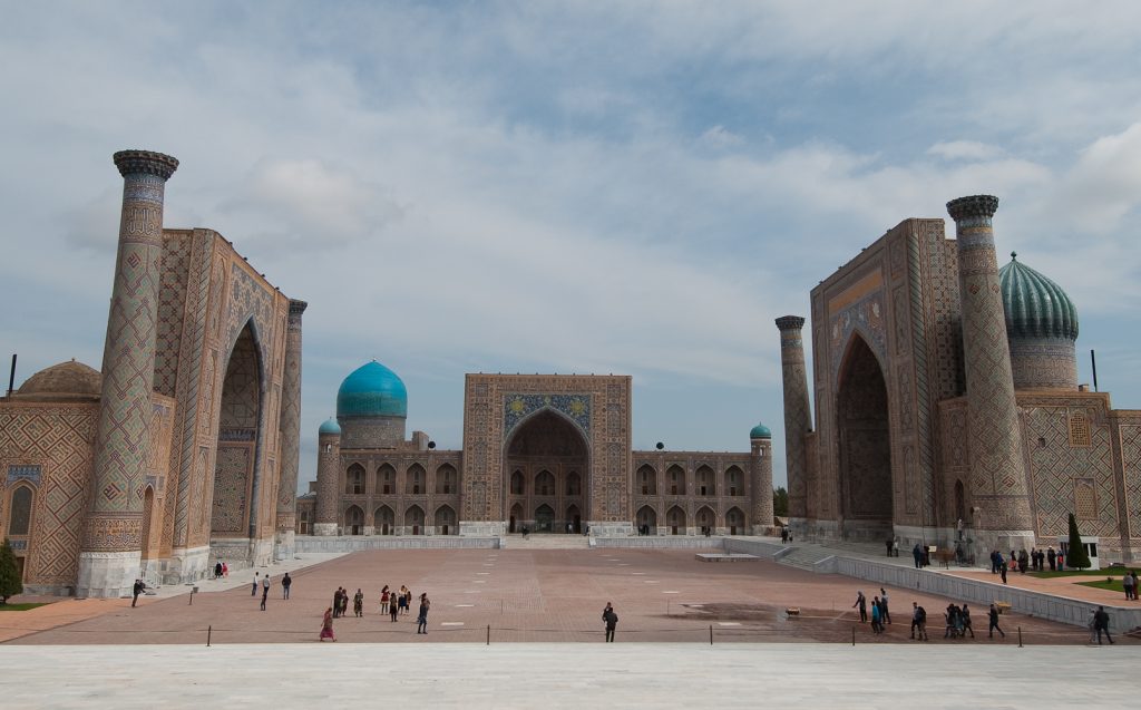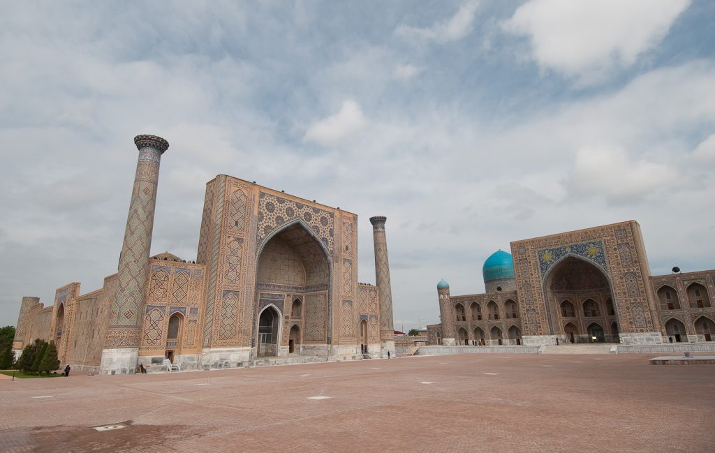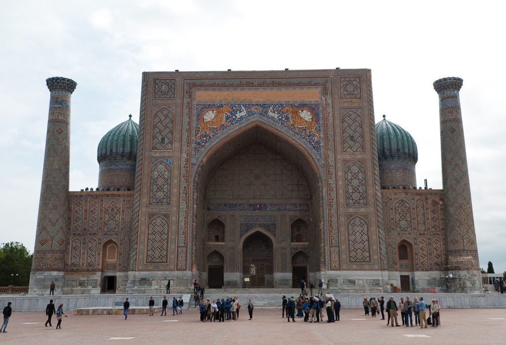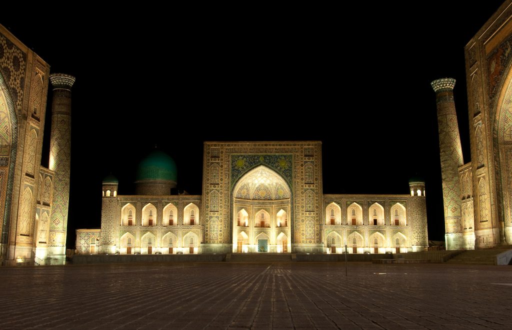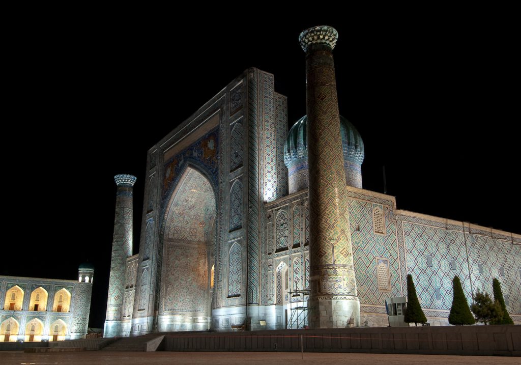 La nostra visita comincia dal maestoso Registan, il vero cuore della città e uno dei più begli esempi del patrimonio architettonico islamico mondiale. Registan vuol dire “posto della sabbia”, a ricordare che nel periodo zarista era animata da un affollatissimo bazar, ha oggi un aspetto imponente e magnifico con il complesso degli edifici perfettamente restaurati che insistono sulla piazza.