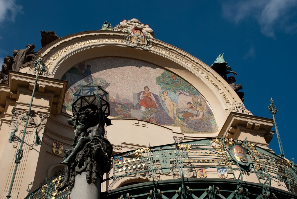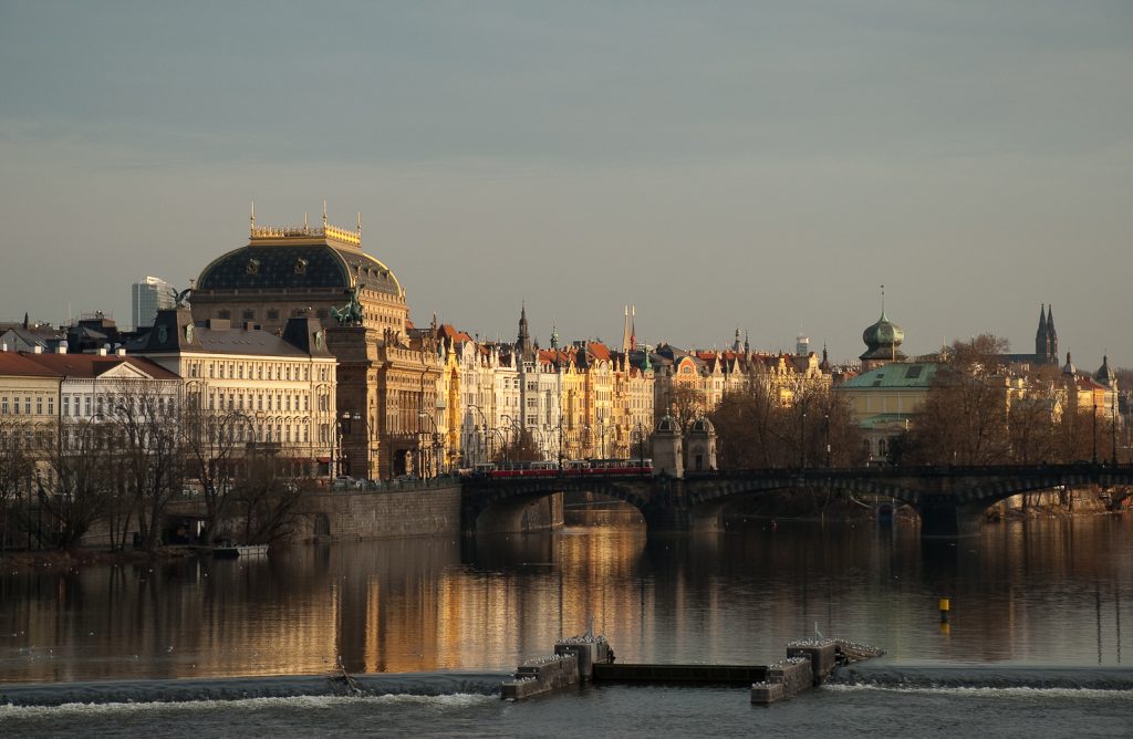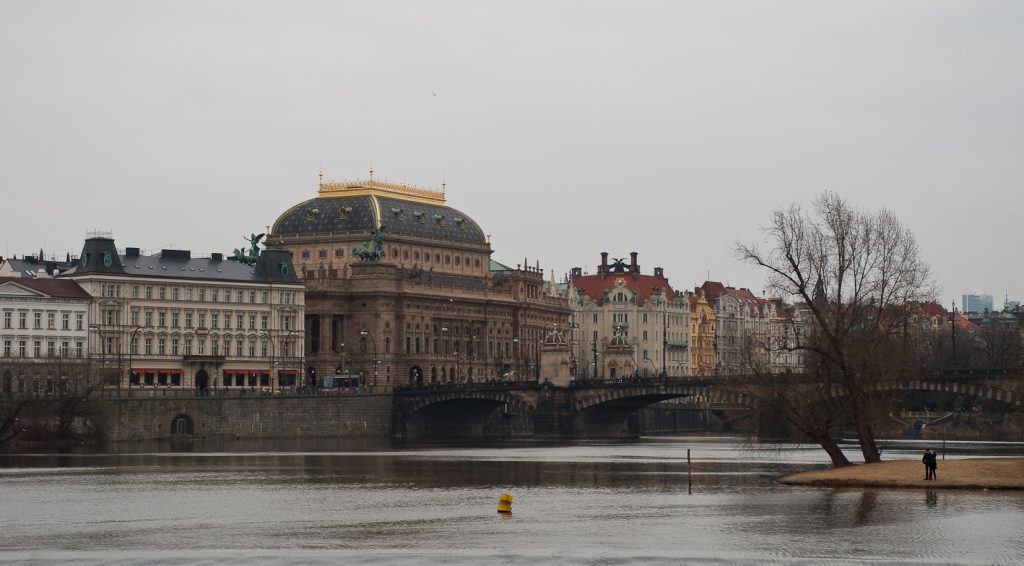 Tornati sul lungofiume continuiamo a passeggiare finché giungiamo davanti al Teatro Nazionale, con la sua profusione di decorazioni narra un altro importante capitolo della storia culturale e musicale della città. Esso rappresenta un simbolo della lotta dei cechi per il riconoscimento della propria cultura e lingua e con la sua architettura neorinascimentale è ancora oggi un tempio della resurrezione nazionale.