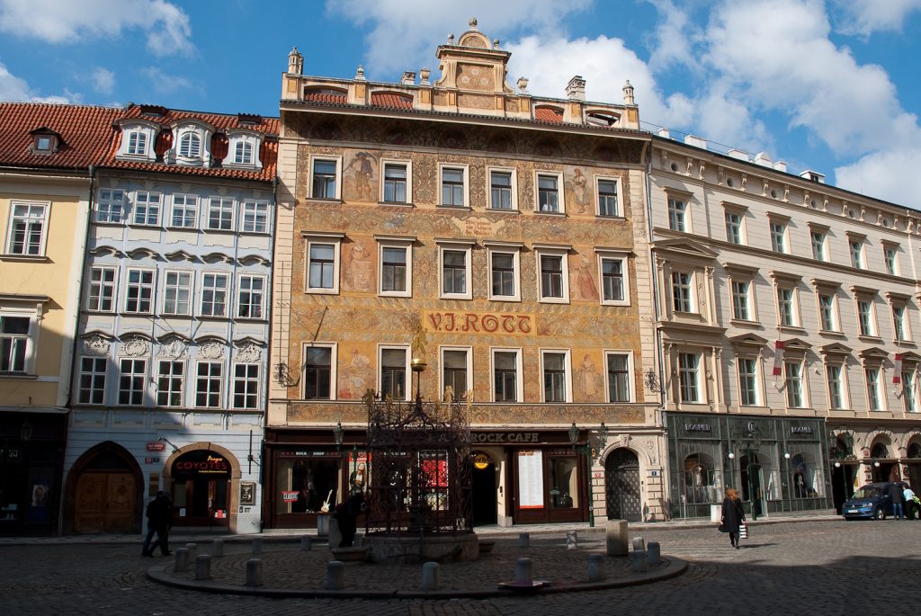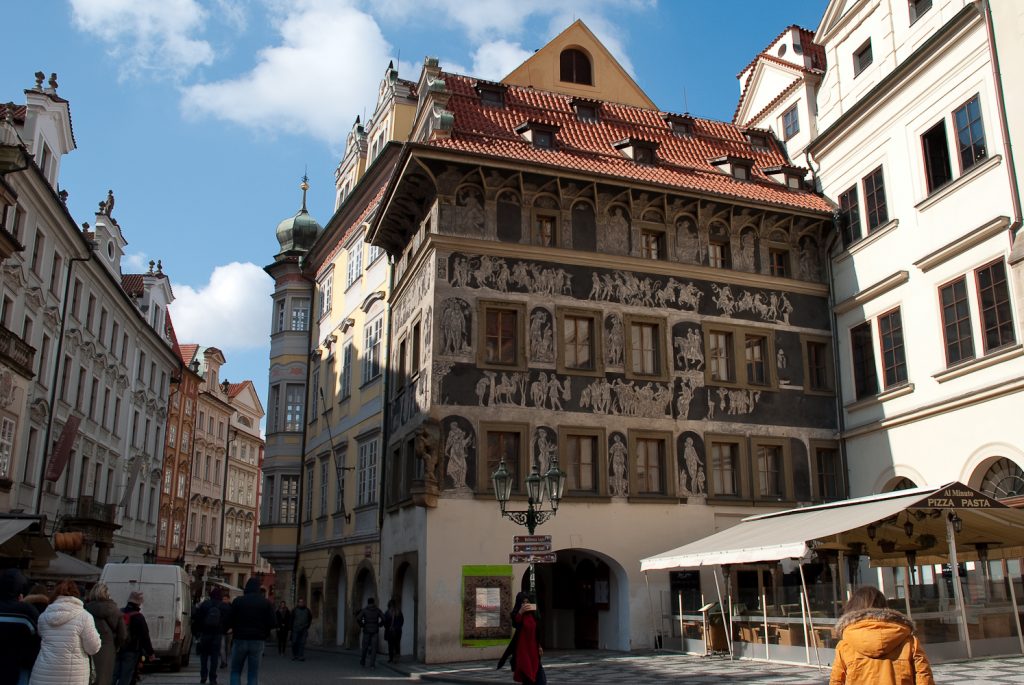 Quando lo spettacolo termina, dirigiamo i nostri passi verso la Chiesa di San Nicola, quindi è la volta di Palazzo Kinsky e della casa “Alla campana di pietra”, della chiesa della Vergine Maria davanti a Tyn e la casa dell’Unicorno bianco.