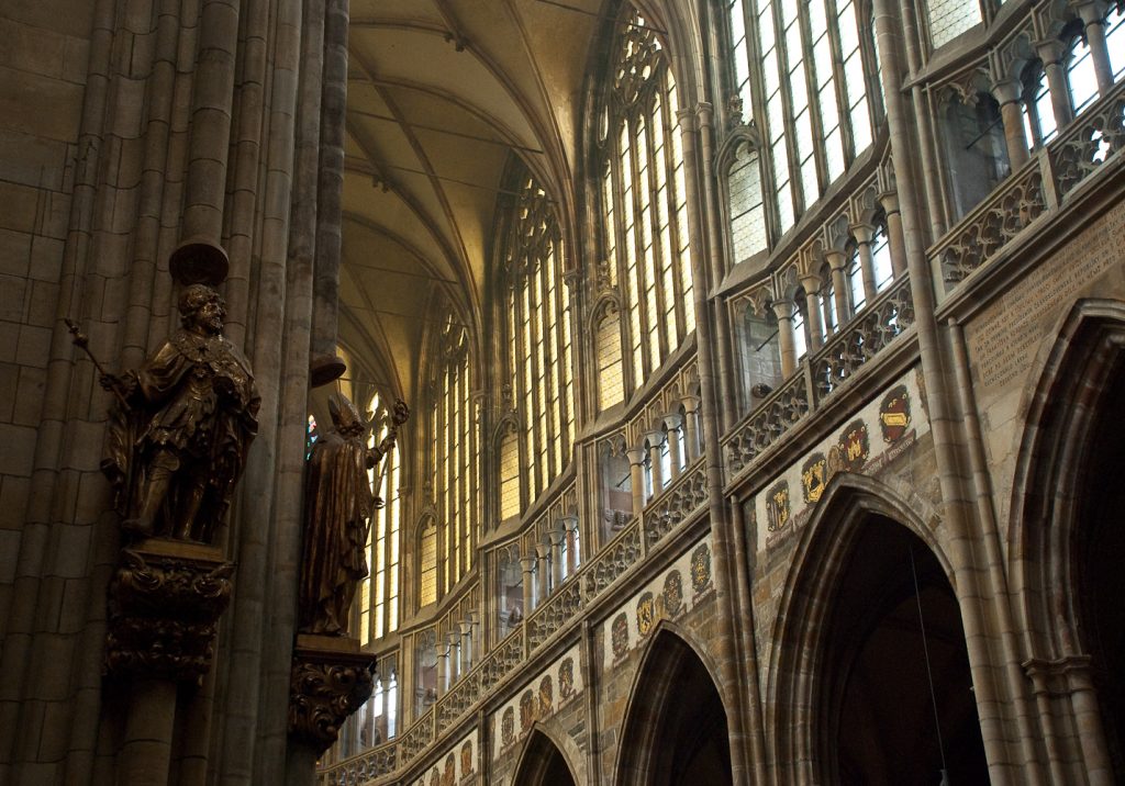 All’interno delle sue mura è incastonato l’edificio che rappresenta il centro religioso della Boemia, la Cattedrale di San Vito, sorprendente per la sua mole, arricchita da doccioni e guglie, con il suo grande rosone, la sua Porta d’Oro, la cappella di San Venceslao, la tomba di San Giovanni Nepomuceno e il mausoleo reale.