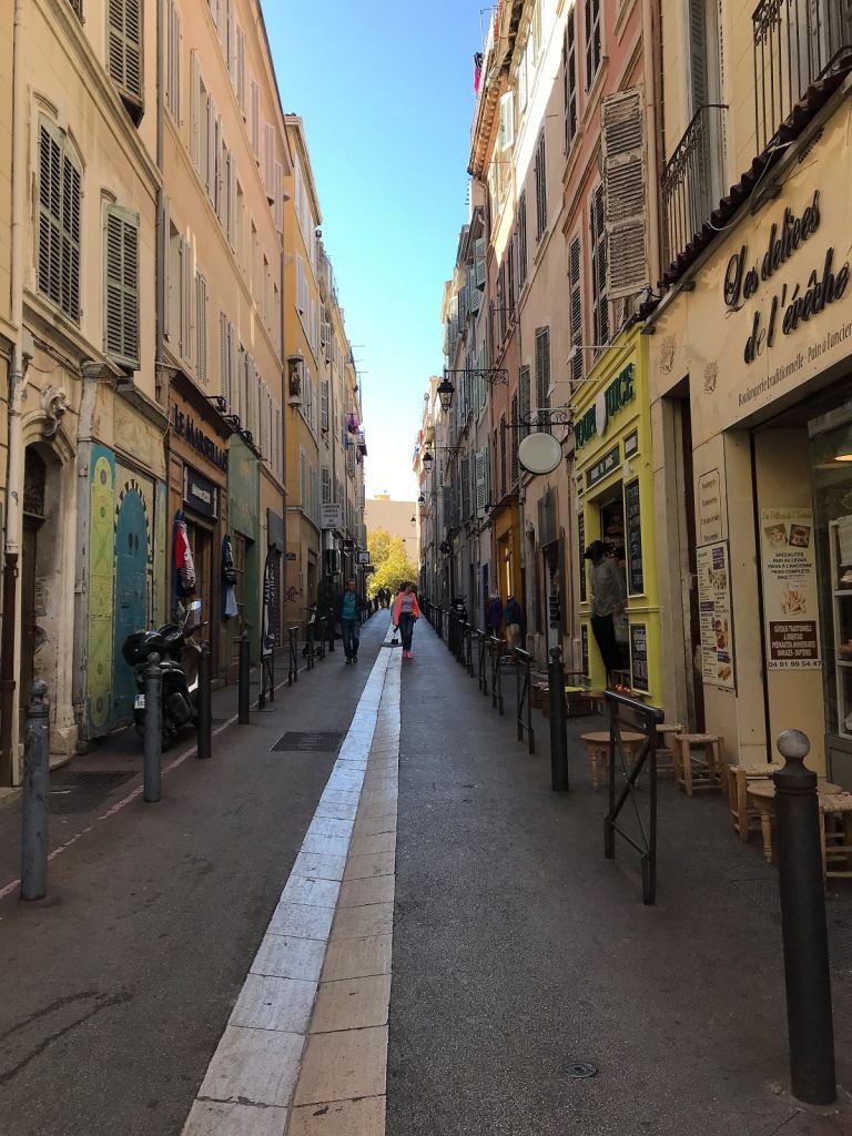 Il 5 di ottobre prendiamo il nostro aereo e in poco più di due ore siamo a Marsiglia. Arriviamo in città in serata e preso possesso del nostro minuscolo appartamento ai confini del quartiere Le Vieux-Port e soddisfatte le necessità di sostentamento di Claudia, usciamo per passeggiata e cena, a base di ostriche. I vicoli di Marsiglia sono incantevoli e nonostante le ardite salite e discese la cena nel cuore di Le Panier ci fa immergere subito nell’atmosfera di questa città.