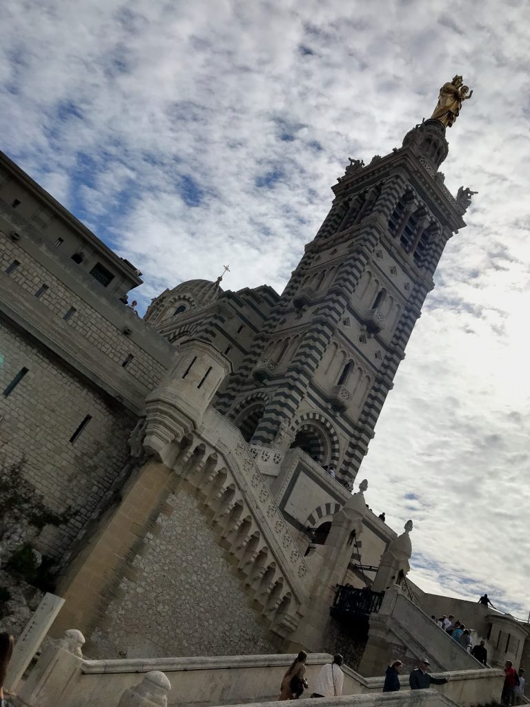 Per pranzo ci addentriamo nuovamente in Le Panier, ci fermiamo a visitare la Vieille Charité e nel primo pomeriggio riscendiamo giù verso il porto per poi salire fino alla Basilica di Notre Dame de la Garde. Da qui il panorama del porto di Marsiglia si apre in tutto il suo splendore, ma costa veramente molta fatica trascinare il passeggino di Claudia su giù per le scale di questa Basilica su più livelli e arroccata in cima alla collina.