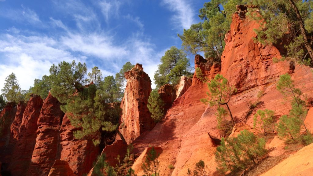 Giorno 7 ottobre partiamo alla volta di Roussillon e il sentiero delle ocre. Subito fuori dal paesino di Roussilon immerso nel cuore del Luberon, il sentiero delle ocre viene definito il Colorado Provencal per le forme e i colori che lo ricordano. In effetti è molto piacevole passeggiare per questo sentiero.