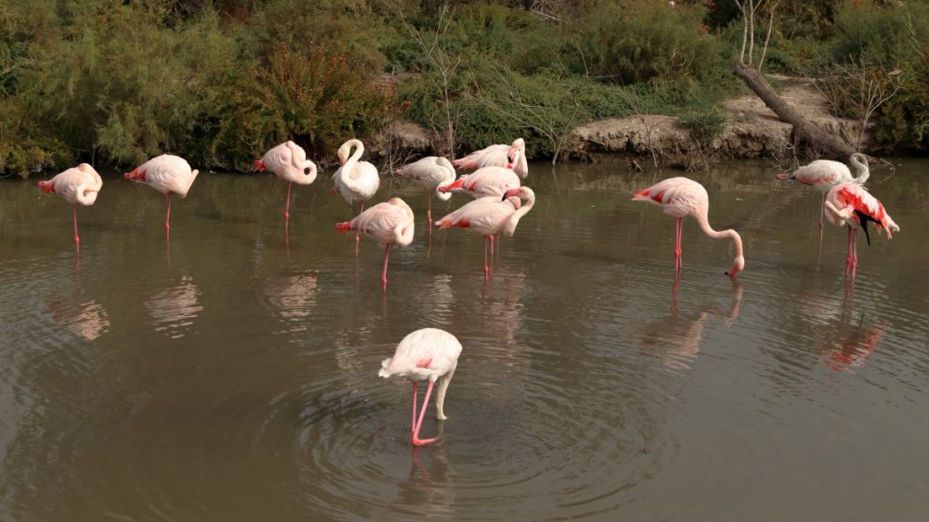 Diversi sentieri si snodano nel paesaggio intervallati da postazioni specifiche per l’osservazione da vicino di fenicotteri rosa, aironi porporini, merli acquatici, ma anche garganelle, castori, bisce e cavalli allo stato brado.