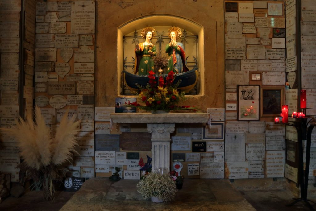 A pranzo giungiamo a Saintes-Maries-de-la-Mer. In ottobre questo luogo ha il fascino un po’ decadente delle località di mare fuori stagione, anche la giornata è un po’ scura ma l’ottimo pranzo a base di ostriche, pesce e vino bianco ci ripaga dei mancati festeggiamenti della sera prima. Sazi e soddisfatti visitiamo la cittadina e, ovviamente la sua bella cattedrale, luogo di culto d’elezione della cultura gitana, poiché nella cripta di questa chiesa sono conservate le spoglie di Santa Sara.