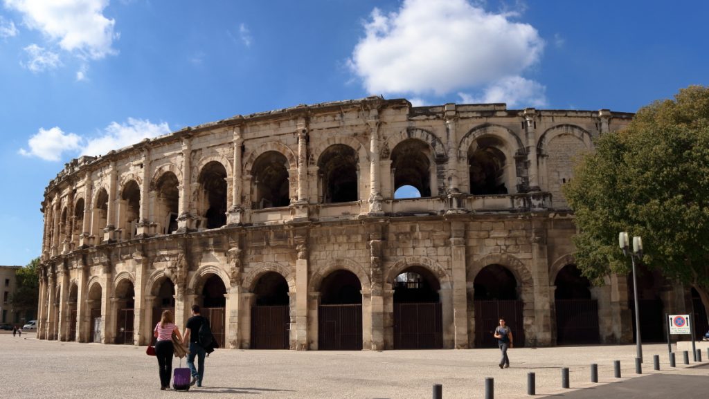 E’ quindi la volta Nimes, cittadina di chiare origini romane, periodo di cui conserva un cospicuo patrimonio architettonico e monumentale. Essa rappresenta un punto di commistione tra la Provenza e la Linguadoca e conserva l’atmosfera festosa tipica del sud. Cominciamo la nostra visita da quello che certamente è il punto di interesse principale della città, l’anfiteatro romano del I secolo, in grado di contenere fino a 24.000 spettatori, che attualmente ospita corride e corse di tori.