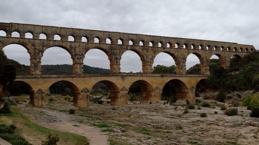 Il giorno dopo, ci accompagnano un po’ di nuvole ci dirigiamo verso il vicino Pont du Gard. Capolavoro dell’architettura antica è una delle più belle costruzioni romane al mondo, costituito da tre serie di arcate domina il fiume Gardon con i suoi 49 mt di altezza.